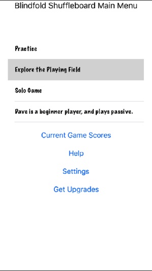 Blindfold Shuffleboard is an fully accessible audio game that's similar to outdoor shuffleboard. In Blindfold Shuffleboard, you can play by yourself, or against a variety of computer opponents. Shuffleboard is played with 4 discs per player, and you alternate turns, shoving your discs down the shuffleboard court into the scoring zone, or knocking your opponents discs out of the scoring zone. You shoot your discs by aiming towards the scoring area and flicking. The faster you flick, the more powerful your shot is. You hear the disc sliding down the shuffleboard court, and sometimes hitting the other discs. . Like real shuffleboard, you can score as high as 40 points, or as low as -40 points. And you can post your high scores to Facebook or Twitter. Blindfold Shuffleboard was suggested by several blind gamers who enjoyed Blindfold Pong and Blindfold Spades. The game includes several in-app upgrades.