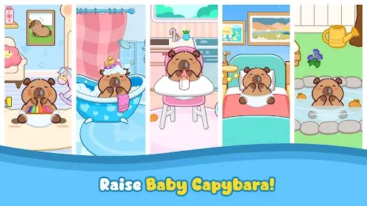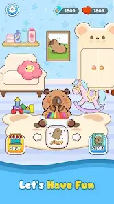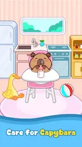 🏠? カピバラの家を飾る:ミニゲームからの報酬を使って、カピバラの部屋の装飾品を購入しましょう!アイテムを集めて仮想ペットの居心地の良い空間をカスタマイズして、完璧なカピバラの楽園を作りましょう。可能性は無限で、新しい装飾アイテムを追加するたびに、カピバラの家はさらに魅力的になります。