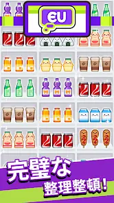 Experience the joy of arranging various items on 2D display shelves, and unlock new products by completing triple matches.