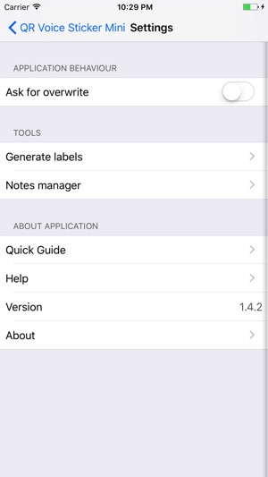 The application is dedicated mainly for visually impaired people. It brings a new solution to mark everyday products in an easy and effective way. It is based on QR codes with voice and text notes assigned to them. QR code stickers can be downloaded from our website and printed on ordinary stickers (A4 format divided in small fields). It is easy to assign the short voice and text note to the particular sticker. The voice note is repeated every time the QR code is recognized by a camera. The QR code is detected automaticly as soon as it appears in camera's field of view. It's reliable and work really fast. For this application, the maximum number of recorded notes is limited to 10.