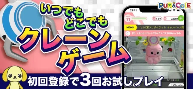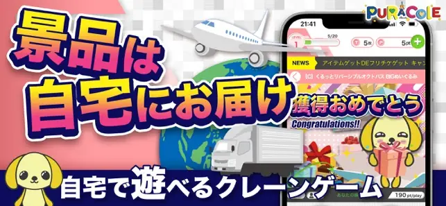 オンラインクレーンゲーム『ぷらこれ』は、いつでもどこでも本物のクレーンゲームがリアルに楽しめるオンラインクレーンゲームです。 クレーンゲームはオンラインの時代!ネットでできるキャッチャーゲーム! 24時間、365日いつでもどこでもオンラインでクレーンゲームが楽しめます! ゲームセンターにあるクレーンゲームやUFOキャッチャーが登録は完全無料、面倒な事前登録も不要でインストール後すぐに遊べます。 今なら初回インストールで無料プレイチケットを3枚プレゼント!! ログインボーナスもあり!! 欲しい景品を探してゲットしよう! 獲得したアイテムは全国どこでも配送無料チケットを使えば送料が無料になります。 ログインボーナスやイベントなどで無料プレイチケット配布などもあるのでお楽しみください。 ◆こんな人におすすめのオンラインクレーンゲーム ・クレーンゲームやUFOキャッチャーが好き ・初心者でも楽しめるオンラインクレーンゲームを探している ・ゲームセンターでユーフォ―キャッチャーをやっている ・自宅でできる話題のオンクレで人気景品をゲットしたい ・人気で無料のオンラインクレーンゲームをプレイしたい ・クレーンゲームのシュミレーション、練習して上達したい ・くれんげーむ景品や限定プライズの景品を集めたい ・イベントが充実しているオンラインクレーンゲームで遊びたい ・簡単にユウホウキャッチャーが操作できるオンクレで遊びたい ・クレーンゲームでアシストがあるアプリでプレイしたい ・ゲーセンは行かないけど、ゆーふぉーきゃっちゃーが好き ・無料で練習できるオンクレを探している ◆豊富な人気景品 人気アニメ、漫画のキャラクターグッズ、フィギュア、ぬいぐるみ、家電、雑貨、キッチン用品、飲料、食品、お菓子からゲームセンターやアミューズメント限定景品まで! 毎日新景品が入荷されますのでお楽しみに! もちろんバンプレスト、セガ、タイトー、フリューの景品も充実! 欲しいプライズをゲットしよう!とれば自宅に無料配送! ~ 遊び方 ~ 1.無料の練習台でお試しプレイ!UFOキャッチャーの練習をしよう! 2.ポイントをチャージ!シンプルなボタン操作で安心! 3.欲しい景品を選んでプレイ!1回で取れなくてもコンテニューできる! 4.狙いを定めてクレーンゲームを操作!アシストサービスもあり! 5.景品GET!発送を依頼しよう! ◆対応OS◆ iOS11.0以上 ◆推奨通信環境◆ LTE(4G)/Wi-Fi ◆オンラインクレーンゲームの映像配信について◆ ※クレーンゲームアプリ『ぷらこれ』はリアルタイムのライブ映像配信によりクレーンゲーム機をリモート操作して遊ぶゲームとなっております。 オンラインクレーンゲームの特性上、通信環境が不安定な場合は、映像が正常に配信できない場合や、プレイ予約が出来ない、クレーンゲーム機のアーム操作のタイムラグ等の症状が発生する場合があります。予め通信環境の良い場所をご確認いただき、オンラインクレーンゲームとご認識の上、お楽しみ下さい。 ◆ぷらこれ公式サイトURL◆ https://puracolle.jp/ ◆利用規約・ポイント利用規約◆ https://newweb.puracolle.jp/kiyaku.php ◆プライバシー・ポリシー◆ https://newweb.puracolle.jp/privacypolicy.php