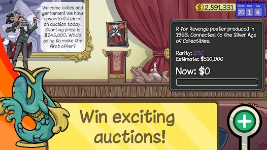 Start small, grow big! Begin your journey in a dilapidated shack, negotiate with customers, hire employees, and participate in auctions to build your daily business.
